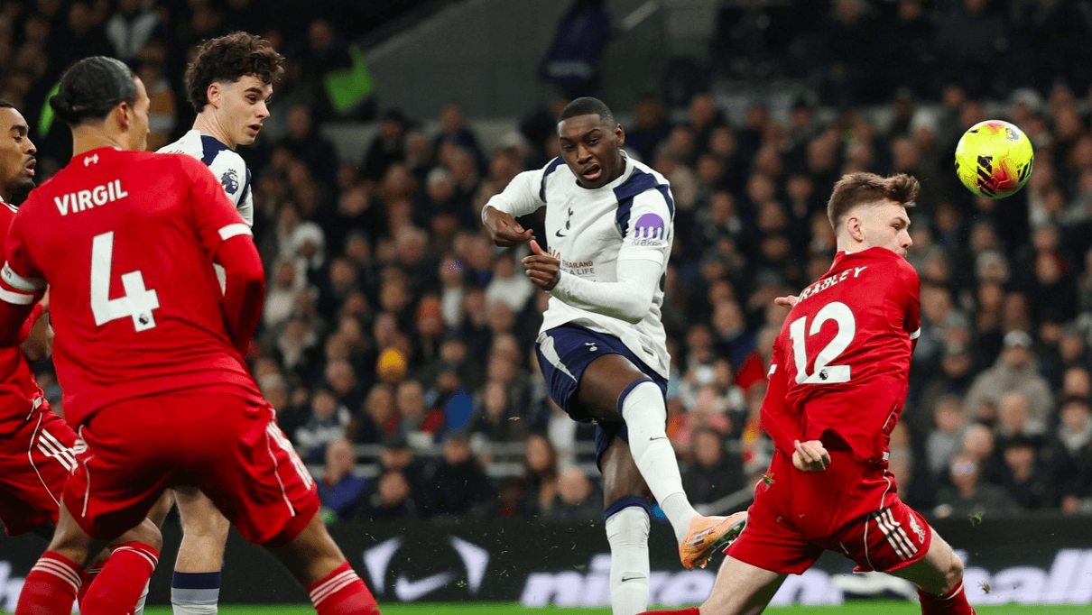 第83分钟,利物浦禁区内一片混乱,理查利松一蹴而就,为热刺扳回一城。
