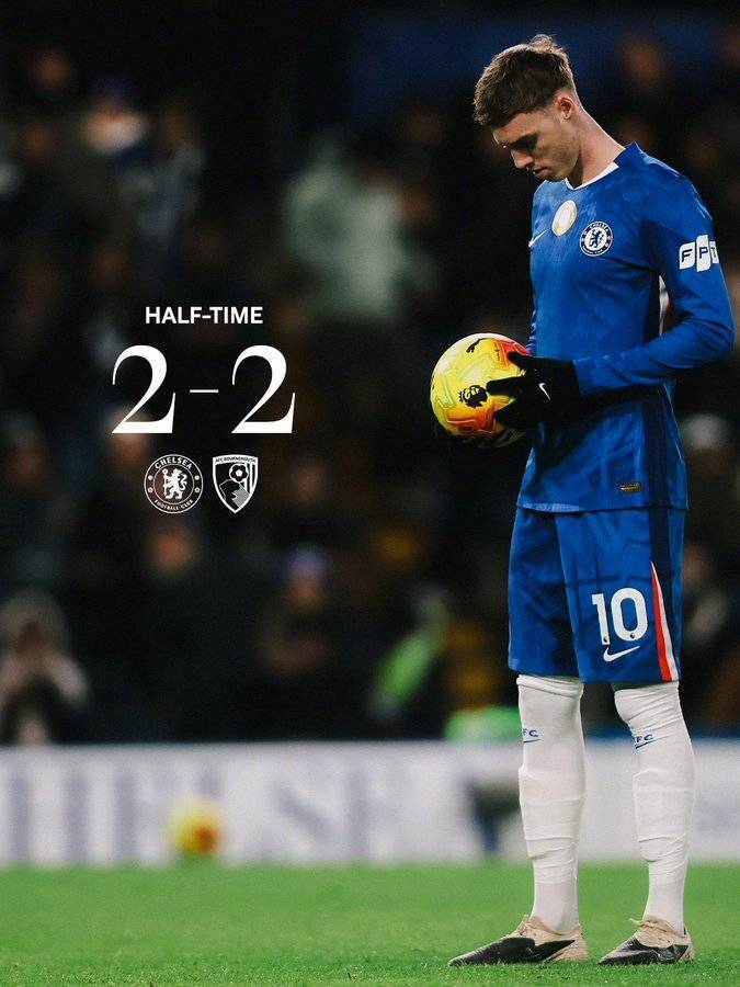 下半场的切尔西占据绝对控球优势,却始终无法转化为制胜进球。马雷斯卡果断换上里斯·詹姆斯和内托加强进攻,球队也创造出多次有威胁的机会:埃斯特旺的突破横传被挡出底线,内托助攻德拉普的头球攻门高出横梁,恩佐的兜射擦着横梁飞出,但均与进球失之交臂。反观伯恩茅斯则坚守反击策略,第90+1分钟于纳尔的抽射虽未命中目标,却也惊出切尔西一身冷汗。最终全场比赛结束,两队以2-2握手言和。